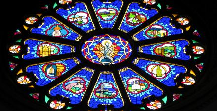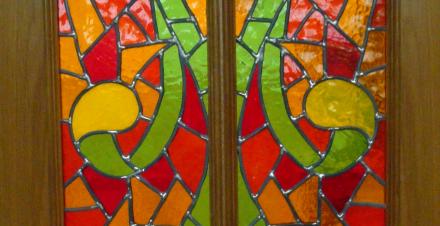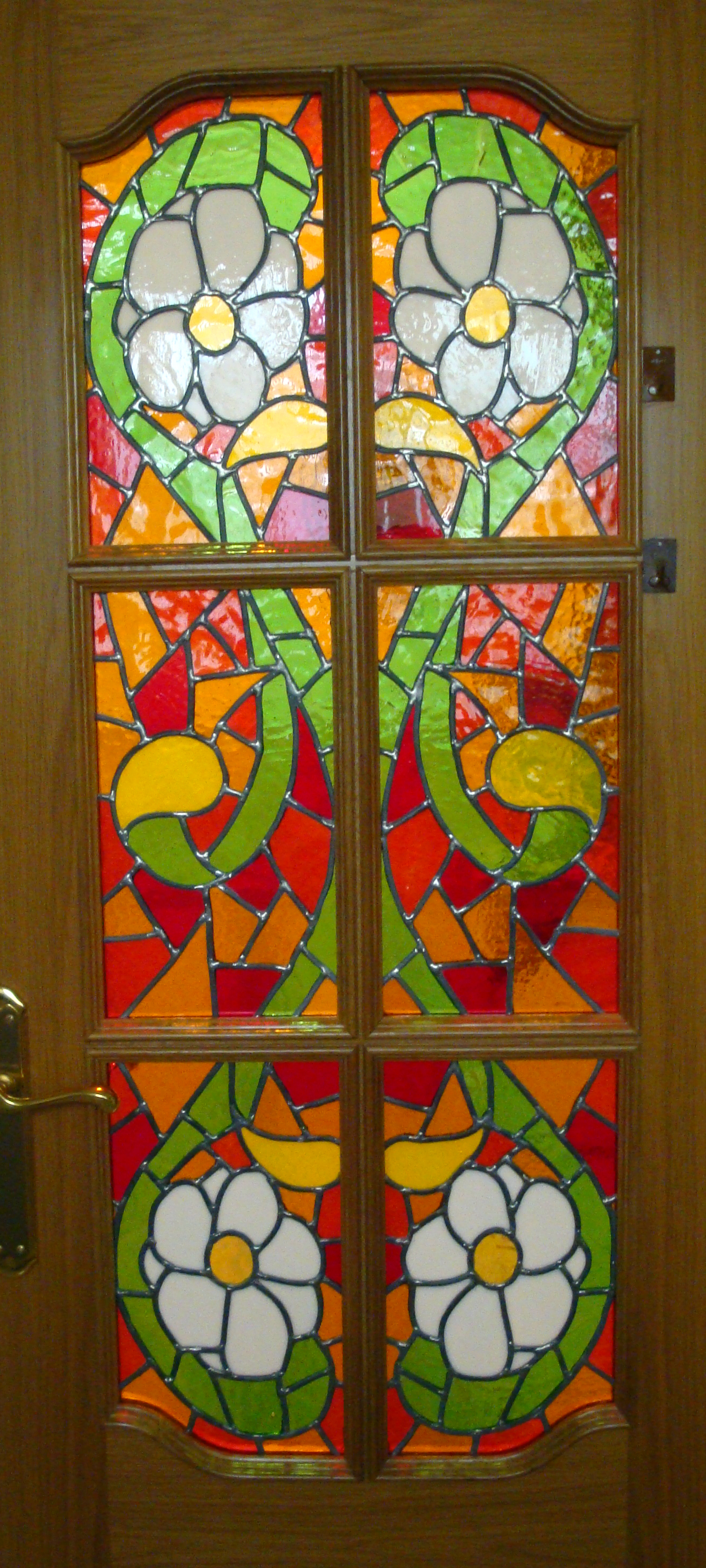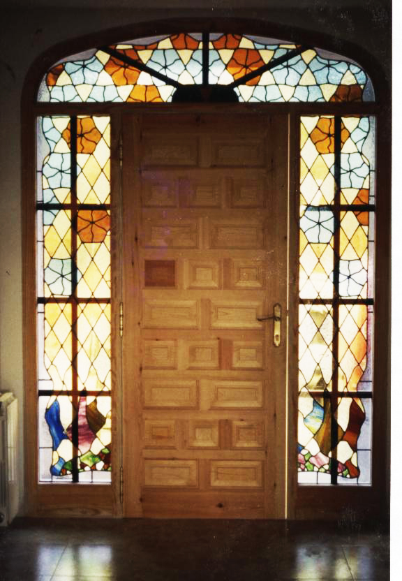 El vitrall emplomat és una composició artística formada per vidres de colors ( 3-5 mm. de gruix ) tallats segons disseny i ajuntats amb tires de plom, seguint la tècnica més tradicional, el plafó un cop acabat és totalment impermeable, cosa que permet la seva col·locació tant a l’interior com a l’exterior.