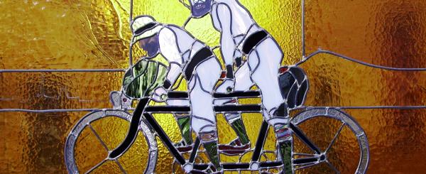 Versió en vitrall del quadre de Ramon Casas "Ramon Casas i Pere Mateu en tandem" MNACCategoria: EmplomatsComparteix a: Facebook Twitter Google Plus Myspace MSN Live Yahoo LinkedIn Orkut Digg Delicious