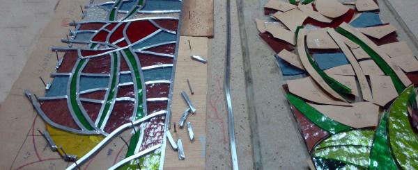Confecció d'un vitrall emplomat en el curs de vitralls